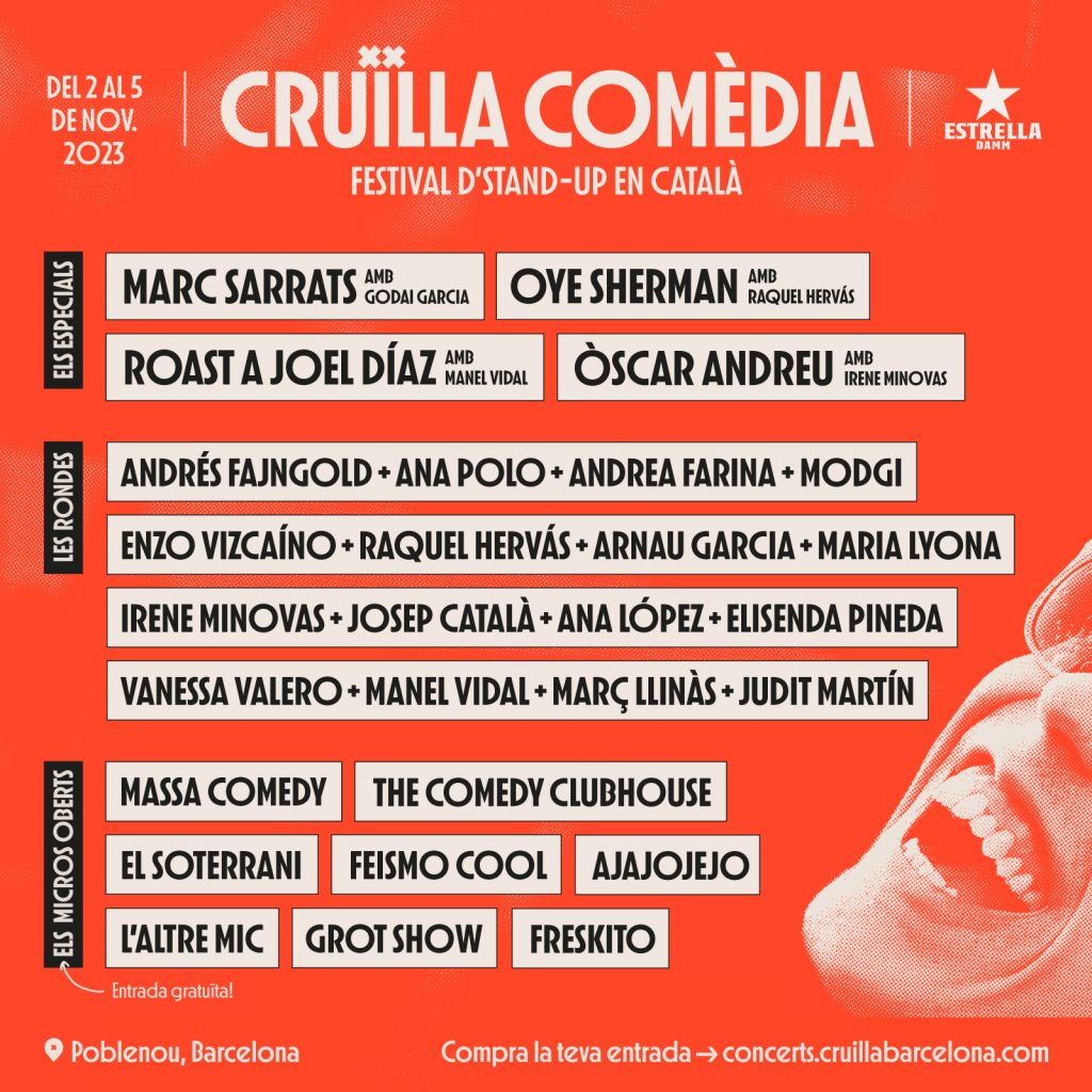 Pel que fa al Cruïlla Comèdia 2023, és el festival d’stand-up en català de Barcelona, que tindrà lloc del 2 al 5 de novembre al barri del Poblenou. Quatre especials d’una hora, quatre rondes de còmics i un grapat dels millors micros oberts de la ciutat en un sol cap de setmana. I, encara que esperem veure’t en tots i cadascun dels espectacles, a continuació te’n recomanem un per al teu enneagrama.