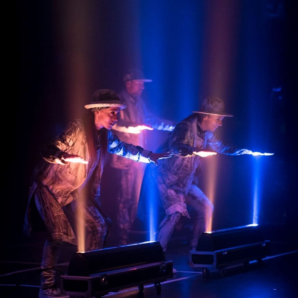 Un conjunto de bailarines de carne y hueso nos transportan a una ambientación futurista y robótica llena de mappings, proyecciones interactivas, lásers, vestuarios de leds y danzas aéreas imposibles. Around the World es, sin duda, el espectáculo más tecnológico de los Brodas Bros.